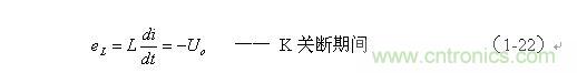 上式中Uo前的負(fù)號,表示K關(guān)斷期間電感產(chǎn)生電動(dòng)勢的方向與K接通期間電感產(chǎn)生電動(dòng)勢的方向正好相反。