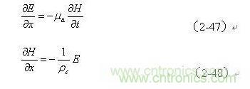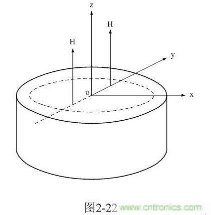 從圖2-19可以看出,磁場(chǎng)強(qiáng)度由H = Hz:和Hx = Hy = 0組成;對(duì)于電場(chǎng)強(qiáng)度,其指向平行于Y軸為E = Ey,Ex = Ez = 0。因此,上面兩式又可以改寫(xiě)為: