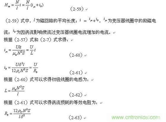 圖2-21-a就是根據(jù)(2-62)、(2-63)式畫(huà)出的開(kāi)關(guān)變壓器受渦流影響時(shí),輸入端磁化過(guò)程的等效電路圖。