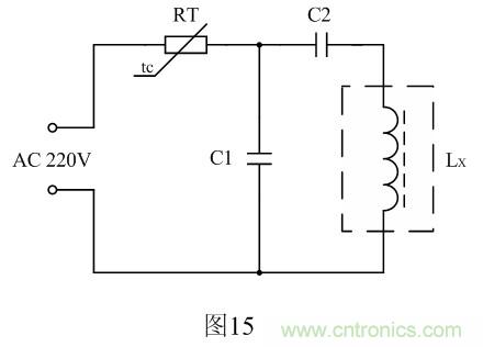 圖15中RT為熱敏電阻,Lx為小功率開關(guān)變壓器初級線圈,C1為分流電容,C2為限流電容。電容C1和C2的大小,需根據(jù)小功率開關(guān)變壓器初級線圈勵磁電流的大小來決定。一般消磁電流需要達到極限電流Imax的3~5倍。