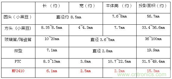 作為安規(guī)元件的保險(xiǎn)絲,MF2410通用模塊保險(xiǎn)絲滿足了上面的小體積和SMD工藝的需求。相對(duì)于傳統(tǒng)保險(xiǎn)絲的尺寸,MF的體積小優(yōu)勢(shì)十分明顯。