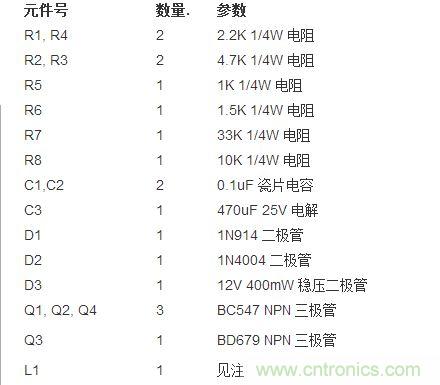 2、D3的值不同可以被用來調整從約0.6V至30V的左右不同的輸出電壓。請注意,在高電壓的電路可能電流提供不足。