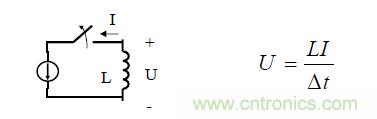 2. 當一電感上的電流突然中斷, 在其兩端會產生一瞬時高壓, 并且電感量越大該電壓越高。
