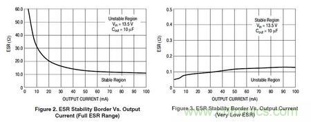 在線性穩(wěn)壓器環(huán)路中,輸出電容和后續(xù)的負(fù)載形成了一個極點,此極點造成了穩(wěn)壓器環(huán)路的不穩(wěn)定。為了補償這個極點,一般做法是用輸出電容的ESR來產(chǎn)生一個零點。所以,在選擇穩(wěn)壓器的輸出電容時,需要考慮ESR。