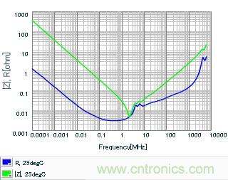 在負(fù)載30mA的情況下,其ESR要求在0.1~15ohms之間。而MURATA的10uF 1206 X7R MLCC的ESR查的為遠(yuǎn)小于0.01ohm:
