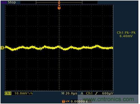 以安森美NCV4949來講,在其輸出端加一個10uF的陶瓷電容,在電容后端測量到的瞬態(tài)響應(yīng)如圖(AC mode):
