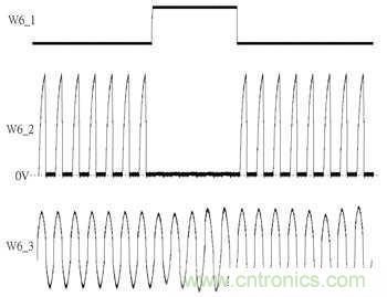 參考圖2其W6_3為線圈訊號、W6_2為S12即Q13之閘極端訊號、W6_1為Q131閘極端訊號,當RX-U1輸出高電位到Q131便會使該區段S12訊號維持在低電位,造成整流器在該區段不發生導通狀況,用意在于暫停整流動作。