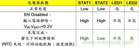 若電池在充電狀態(tài)下,充電時間已超過使用者所設(shè)定的充電計時保護時間,但充電器卻仍尚未脫離當(dāng)前的充電狀態(tài)或結(jié)束充電,這時IC的充電計時保護功能就會立即啟動,迫使充電器停止對電池充電(圖3),此時的STAT1(Pin 12)位準為High,LED1指示燈為不亮(圖4);若將TMR(Pin 15)腳位連接至GND(Pin 6)腳位,便可以解除使充電計時保護功能。