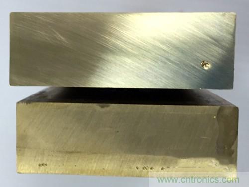 下圖所示為恩耐nLIGHT altaTM光纖激光器與某傳統光纖激光器進行黃銅焊接后的截面 - 前者卓越的焊接質量顯而易見。