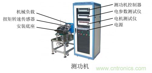 測功機的構(gòu)造很簡單,由一個機柜和測試臺架組成,其中測試臺架又常稱作測功頭,一般是指扭矩轉(zhuǎn)速傳感器和制動器做成一體的款式。測試臺架包括安裝底座、扭矩轉(zhuǎn)速傳感器、機械負載(制動器),用于電機試驗時的力矩加載,模擬電機的不同工況;機柜包括電參數(shù)測試儀、電機測試儀、測功機控制器、電源等,用于對系統(tǒng)的驅(qū)動和對電機的測試。