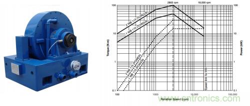 磁粉制動器:可以輸出很大的扭矩,但一般只能運行在低轉(zhuǎn)速(1000rpm)以下,只適用于大扭矩、低轉(zhuǎn)速的電機測試場合。可偏偏電動汽車電機,特別是乘用車電機,動輒上萬rpm的轉(zhuǎn)速,讓磁粉制動器直接出局。