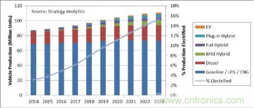 研究公司Strategy Analytics的研究表明,各類電動汽車的產量在汽車總產量中所占的份額預計將從 2016 年的 5% 提高到 2023 年的 15%。