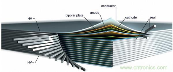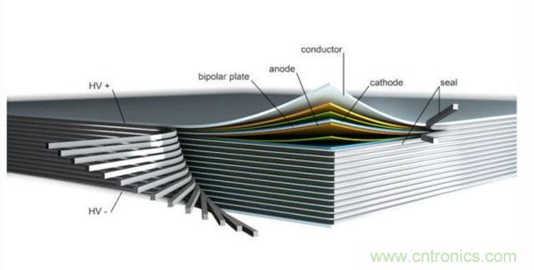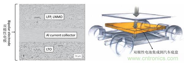 如今,電池儼然成為了決定電動車未來的核心部件,這也不難理解那么多的電池制造商在電池技術上絞盡腦汁、期望有所重大突破,并且制定各種野心勃勃發展目標,例如:將電池系統的能量密度從250Wh/L左右提升到500Wh/L、同時大幅度降低生產成本。一方面,電池材料需要進一步優化,提高電池能量密度,另一方面,電池空間體利用需要提高、減小有限空間內的非活性材料。現有的電池封裝package方式造成了大量的體積被非電池活性材料占據,無法充分利用有限的電池空間。為了實現這個目標, IAV公司與 Thyssenkrupp AG和Fraunhofer Institute for Ceramic Technologies and Systems(IKTS)一起合作開發汽車底盤電池集成項目( EMBATT:chassis-embedded energy),直接將電池嵌入到汽車底盤,大幅度減少電池本身的結構件所占據的體積,達到提高能量密度Wh/L的目標。EMBATT概念的中心思想是采用雙極性bipolar鋰離子電池。在這個合作開發項目中,IAV主要負責車輛開發,包括車輛概念、測量安全、電池布局和設計、控制軟件標定。IKTS主要負責定制化電池材料和電極的制造加工技術。Thyssenkrupp AG主要負責后期的電池生產。