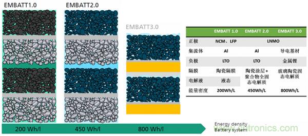 基于EMBATT概念的雙極性電池主要實現以下目標: