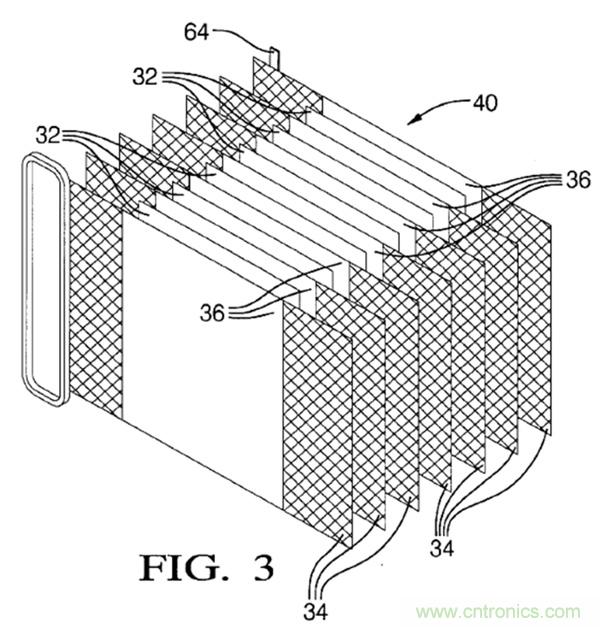 下圖Fig3是雙極性電極的堆疊stack,可以稱之為電堆40。其中,32是隔膜;34是集流體;36是雙極性電極,兩側分別是正負極活性物質。基本結構與上面的示例是一樣的。
