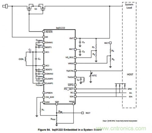 TI無線充電方案BQ51222,雙模式設計(WPC和PMA標準)電源通過穩壓電路輸出電壓5V輸出最大電流為1A。