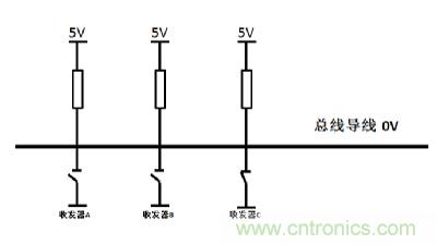 CAN總線的仲裁是基于“線與原理”,如圖1所示。當個收發器同時發出不同電平信號時,隱性電平總是被顯性電平覆蓋。CAN控制器在發送報文的同時會監聽總線狀態與自己發送的電平是否一致,如果不一致發生在ID段則會發生仲裁,如果發生在其他區域則會觸發相應錯誤。