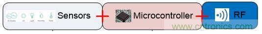 將傳感器與傳統的微控制器連接起來,需要在芯片外構建接口電路,盡管某些設備可能已經將一個固定的ADC集成到了MCU中。對于物聯網應用而言,最理想的莫過于實現完整的模擬和數字組件與高度集成的MCU相結合。