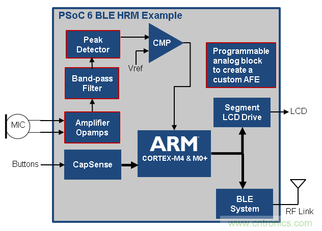 圖2:集成BLE連接與電容式觸摸感應的PSoC 6