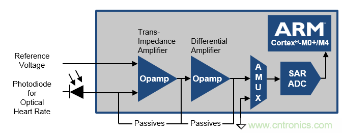 圖 10: PSoC 6 BLE AFE 示例─ 光學體積描技術(PPG ) *