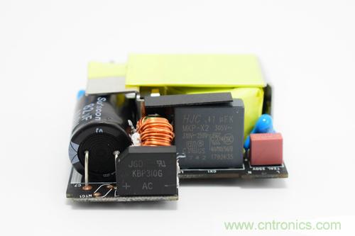全橋整流后的一次側(cè)濾波電源為一枚82μF/400V 電容,來(lái)自SUSCON(臺(tái)灣冠坤)。從此角度看,屬于保護(hù)電路的NTC空缺未安裝。