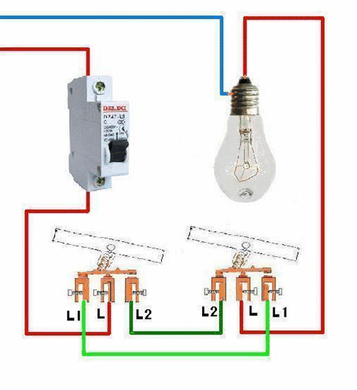 有的朋友說中間可不可以用雙聯雙控開關,也是可以的。不過雙聯開關上有兩個開關,需用同時按下。