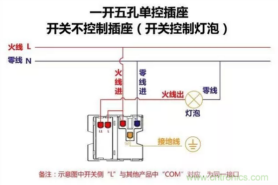 一開五孔單控插座接線圖