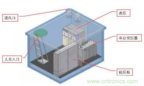 (一)拼裝式變電站。拼裝式變電站將高、低壓成套裝置及變壓器裝入金屬箱體,高、低壓配電裝置間還留有操作走廊。這種型式的箱式變體積較大,已較少使用。