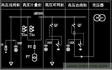 隔離開關QS; 斷路器QF; 電流互感器TA等元件組成。