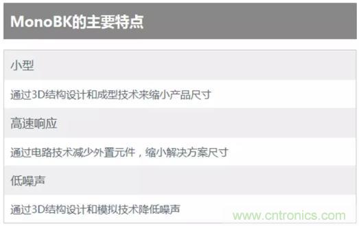 【導讀】除了產品,包括外置元件在內,村田還設計了尺寸小、噪聲低的DC-DC轉換器模塊MonoBK or Mono Block解決方案。村田的MonoBK解決裝置的空間問題。