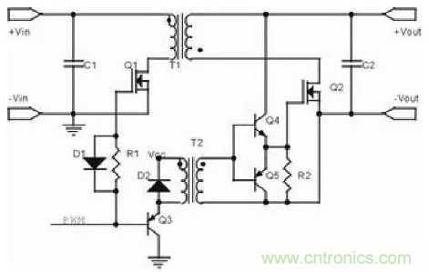 但設采用3.3V甚至1.8V或1.5V的供電電壓,所消耗的電流可達20A。此時超快恢復二極管的整流損耗已接近甚至超過電源輸出功率的50%。即使采用肖特基二極管,整流管上的損耗也會達到(18%~40%)PO,占電源總損耗的60%以上。因此,傳統的二極管整流電路已無法滿足實現低電壓、大電流開關電源高效率及小體積的需要,成為制約DC/DC變換器提高效率的瓶頸。