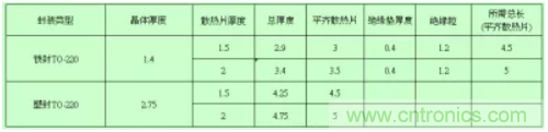 33.結構設計,散熱片使用螺絲固定參考以下表格設計,實際應用中應增加0.5-1mm余量,參考如下表格: