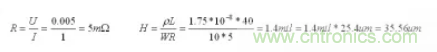 方法:在PCB板上找一條光滑且長的線條,測量其長度L,再測寬度W,再用DC源加1A電流在其兩端測得壓降U