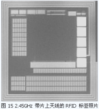 本文所介紹的一些RFID 標(biāo)簽的主要電路,大部分已經(jīng)經(jīng)過了流片的驗(yàn)證。圖14 是我們所設(shè)計(jì)的一款RFID 標(biāo)簽芯片。芯片面積0.7mm×1.0mm,在36dBm EIRP 下,可在6 米處讀出標(biāo)簽卡號。圖15 是2.45GHz 帶有片上天線設(shè)計(jì)的RFID 標(biāo)簽。在42dBm EIRP 下,該芯片可在40cm處產(chǎn)生響應(yīng)。