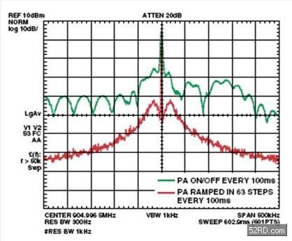 工程人員也需要了解到歐洲法令中,一項加諸在暫態(tài)功率上的限制新規(guī)格,也就是當(dāng)發(fā)射器在正常運作中開關(guān)時,落入臨近頻譜的功率。將此限制加入最新法令中的目的,是要避免頻譜飛散(spectralsplatter)。