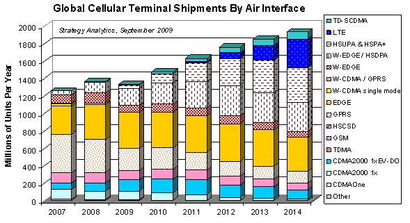 GaAs功放在無線手機射頻前端應(yīng)用中一直保持較高的使用率,盡管有CMOS功放虎視眈眈,但在3G領(lǐng)域,GaAs以其高線性度、高效率的特性處于絕對的市場領(lǐng)先地位,而CMOS功放由于性能、功耗等因素影響,只能用于短距離、低功率的領(lǐng)域,比如WLAN、PHS等。隨著3G的演進,GaAs的市場空間將穩(wěn)步上升,下圖為市場調(diào)研公司提供的全球手機終端出貨情況。