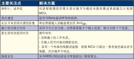 表1:PKE智能應答器的主要技術難點與解決方案。