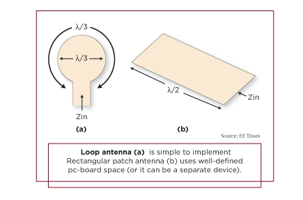 圖1:環形天線(a)易于實現。矩形塊天線(b)使用規劃得很好的PCB空間(它也可是一個分立器件)