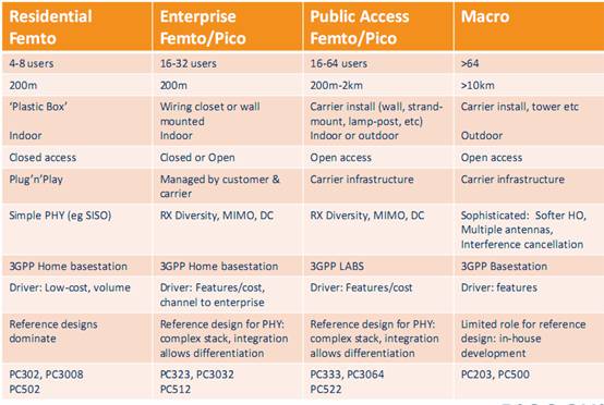 Picochip不僅提供低成本的家庭接入產品,還提供針對企業(yè)和公共接入的大規(guī)模64用戶系統(tǒng),滿足多層次全方面的市場需求。多樣化產品如下圖所示。