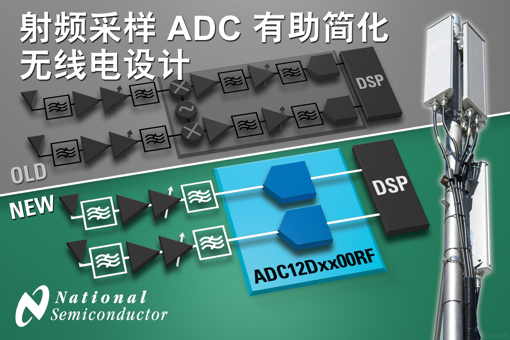 美國國家半導體的全部五款12位射頻采樣ADC現已上市,均采用引腳兼容的熱增強型292焊點BGA封裝。