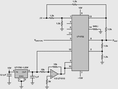 圖4所示為LT1256如何結合分離的電壓電流信號產生電路的瞬時功率。