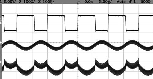 圖6b: 大電機電阻,占空比60%、感應電阻0.1Ω。軌線1是電壓。軌線2為電流,軌線3為瞬時功率。