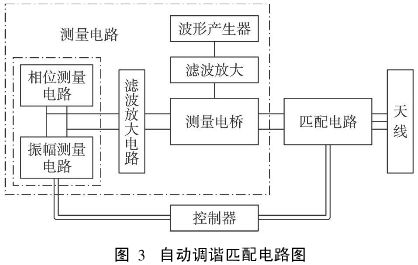 本文提出了一種自動(dòng)匹配技術(shù),其電路如圖3所示,主要包含測(cè)量電路,匹配電路和控制電路。因?yàn)槭止てヅ浞椒ê臅r(shí)長(zhǎng),且需要良好的意識(shí)和豐富的經(jīng)驗(yàn)來選擇合適的電容,另外必須配備一些昂貴的設(shè)備,如網(wǎng)絡(luò)分析儀或阻抗分析儀等。對(duì)于一些小公司來說,是不現(xiàn)實(shí)的。同時(shí),一些手持式RF設(shè)備的發(fā)展使得手動(dòng)匹配越來越不適應(yīng)。對(duì)于這些移動(dòng)設(shè)備,最理想的天線電路應(yīng)該僅僅包含集成模塊,且隨著阻抗變化可以自動(dòng)匹配。