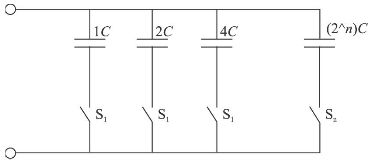 機(jī)械微調(diào)電容器既不是集成的也不是電可控的,二極管電容不能充分隔離信號(hào)電壓和控制電壓。因此,最好的方法是用電容陣列,如圖6所示,由半導(dǎo)體開關(guān)控制。將圖1 中的C1、C2 用電容陣列取代。當(dāng)電容值在1到50 pF之間時(shí),開關(guān)選用了低電容DMOS開關(guān)。與普通開關(guān)不同, DMOS開關(guān)存在寄生效應(yīng)。在斷開期間,開關(guān)引腳之間、信號(hào)引腳與地之間都存在這寄生電容。這些電容使得電容陣列的調(diào)諧范圍變窄,同樣也使天線阻抗的調(diào)諧范圍變窄。這個(gè)問題仍然有待于進(jìn)一步的研究。
