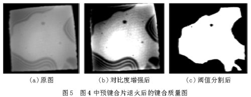 該檢測儀更具有靈活性和實用性,不但可用于同質(zhì)材料鍵合片的質(zhì)量檢測,還可用于異質(zhì)材料鍵合片的檢測,用于篩選適合下一步工藝研究的合適鍵合片等。同時,該檢測儀結(jié)合到鍵合裝置中,可以實時觀測鍵合過程中鍵合的動態(tài)圖像,觀察鍵合波,實時指導(dǎo)鍵合工藝。但目前已實現(xiàn)的軟件功能還很簡單,只能進行鍵合質(zhì)量的初步評估。要獲得鍵合片的更多信息,需要添加軟件功能,這是該系統(tǒng)的不足之處和值得改進的地方。