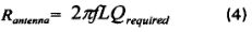 設天線的諧振電阻為Rpor,理想品質因數為Qreqtuired,則: