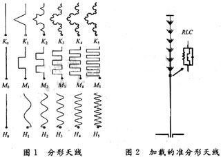 由于單純的RLC加載對小型化天線設(shè)計(jì)具有局限性。在保證一定效率的前提下,要進(jìn)一步減小單極子天線的尺寸,還需要做進(jìn)一步的研究。其中彎折線天線和分形天線是適應(yīng)設(shè)計(jì)發(fā)展的又一技術(shù)方法。如圖1所示。