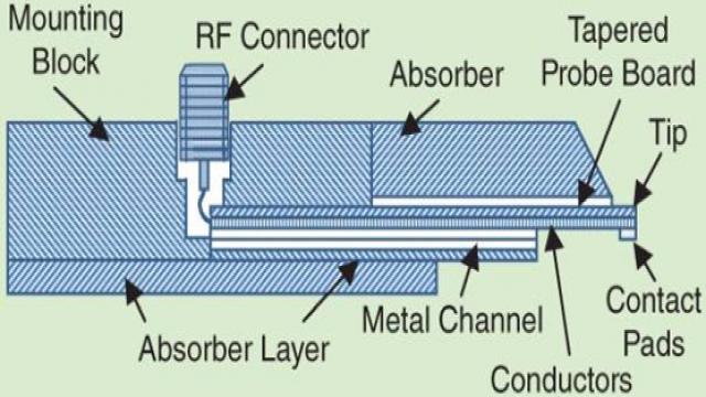 人們最早采用射頻探針技術與今天的工具是很不相同的,早期探針使用了由一個很短的線極尖(wire TIp)而逐漸收斂的50-Ω微帶線,通過探針基片上一個小孔而與被測器件(DUT)的壓點(pad)相接觸。此時,其技術難度在于如何突破4GHz時實現可重復測量。雖然有可能通過校準過程來剔除一個接觸線極尖相對較大的串聯電感的影響,但當圓晶片的夾具被移動時,線極尖的輻射阻抗會有較大的變化。高頻測量使用的極尖設計與用于直流和低頻測量的極尖不同,而且必須使50-Ω環境盡可能地接近于DUT壓點。