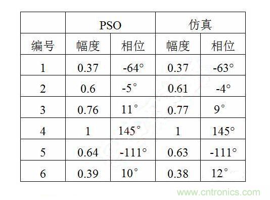 從圖8可見仿真結果與目標方向圖吻合較好,說明粒子群算法優化出的結果可靠。