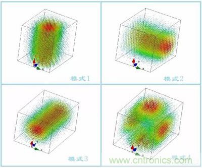通過(guò)以上電場(chǎng)分布圖可以觀察到,單腔雙模,單腔三模可以自由選擇。在高次模出現(xiàn)的頻率點(diǎn)上,通過(guò)選擇介電常數(shù),與控制諧振腔尺寸,對(duì)高次模進(jìn)行優(yōu)化。盡量拉遠(yuǎn)高次模出現(xiàn)的頻率,減小對(duì)通帶的影響。